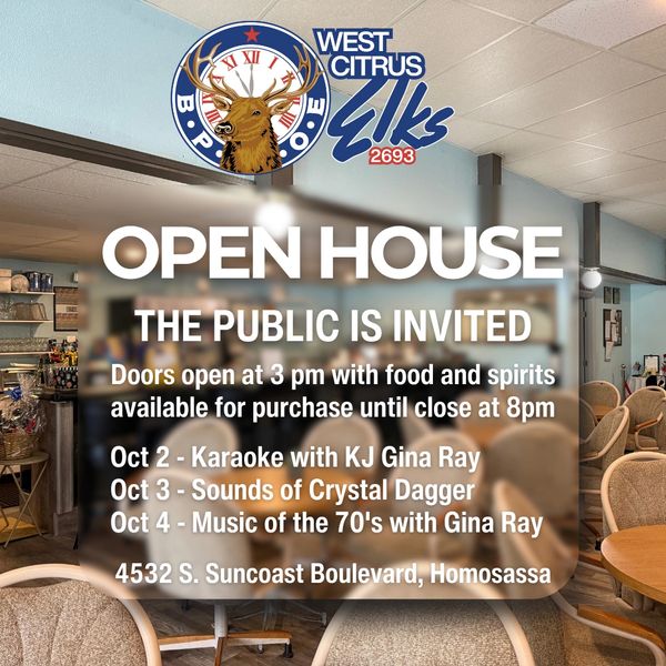 You’re invited to join us for a 3-day celebration at our brand-new lodge! Come meet our members, learn about the Elks—from our beginnings to lodge membership—and enjoy music, fun, and fellowship. Bring your friends and neighbors!